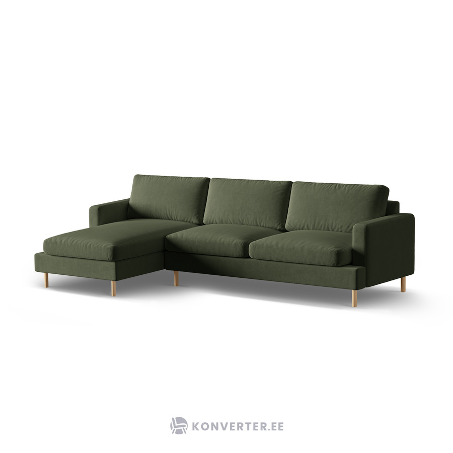 Угловой диван «Алия», мохово-зелёный меланж, бархат, левый