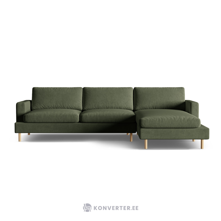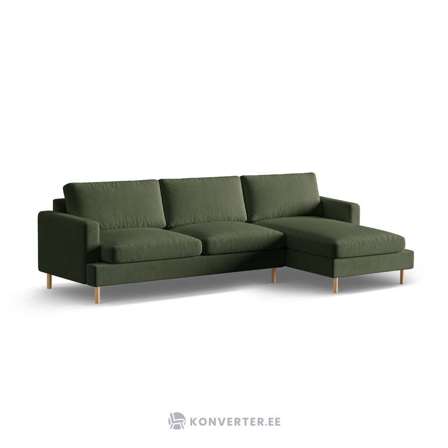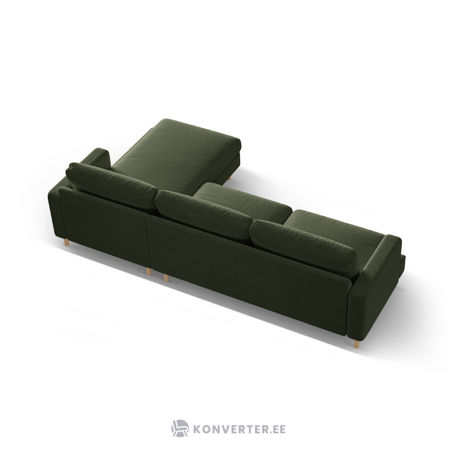 Угловой диван «Алия», мохово-зелёный меланж, бархат, правый