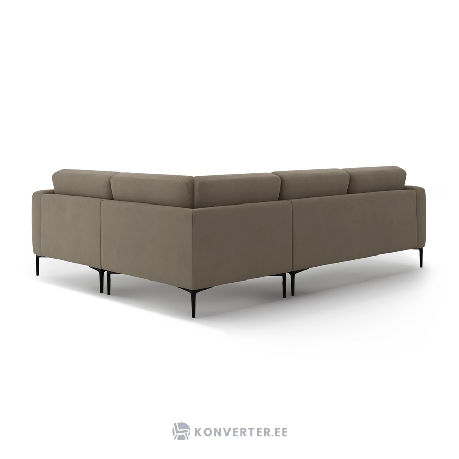 Угловой диван «Бэми» серо-коричневый, бархат, правый