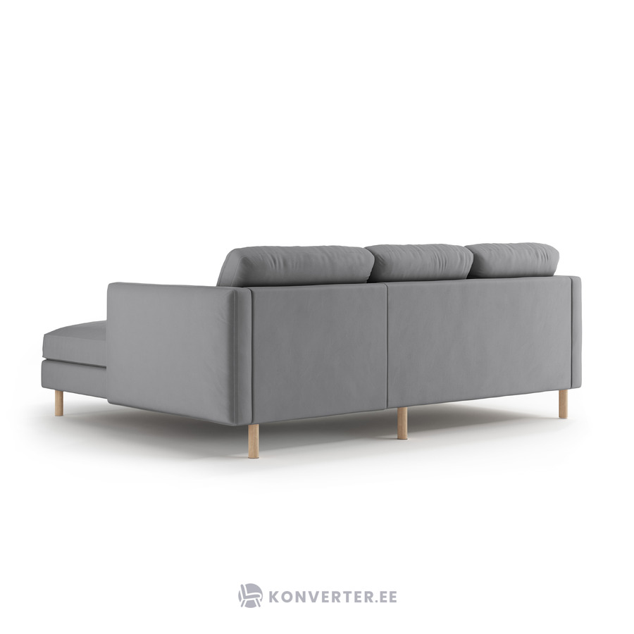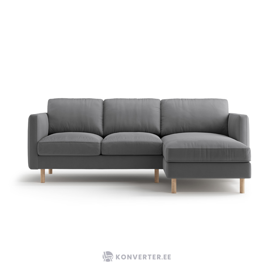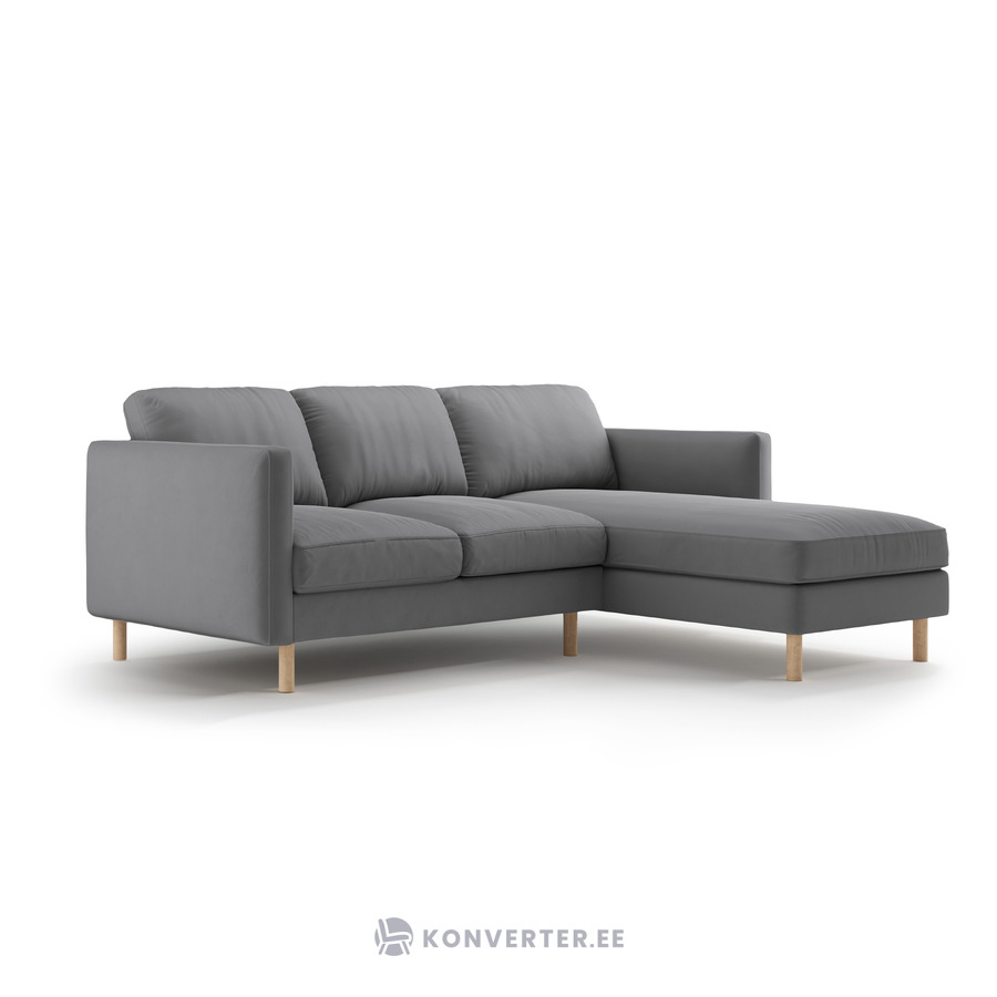 Угловой диван «Эден» серый, бархат, правый