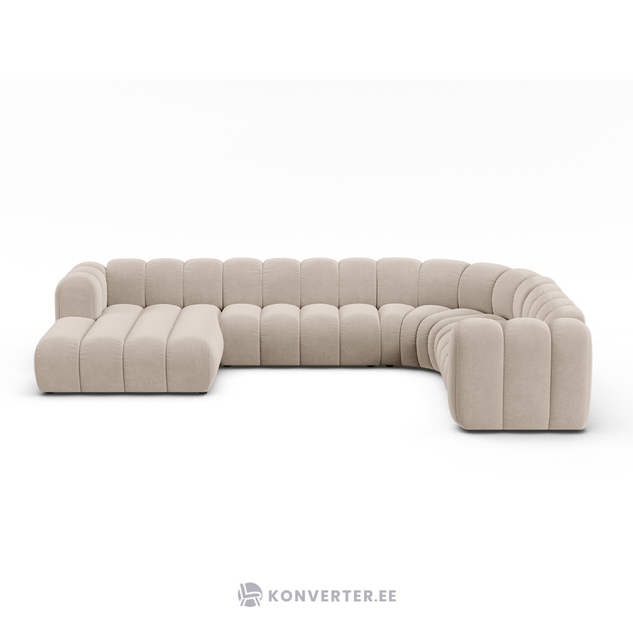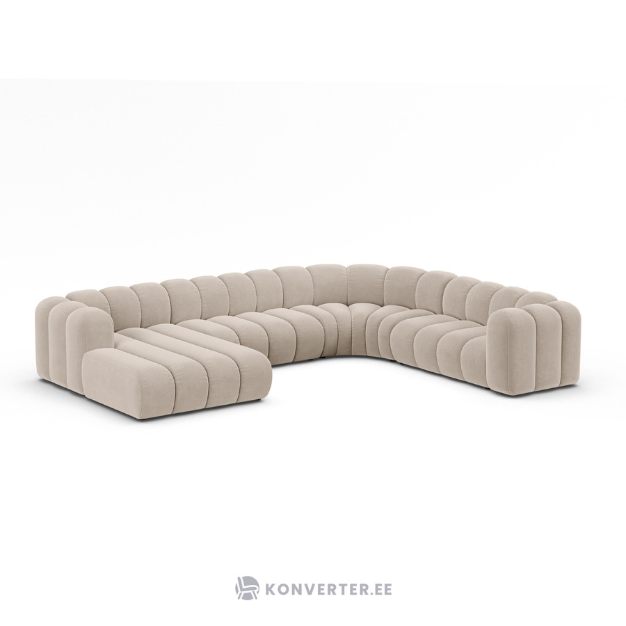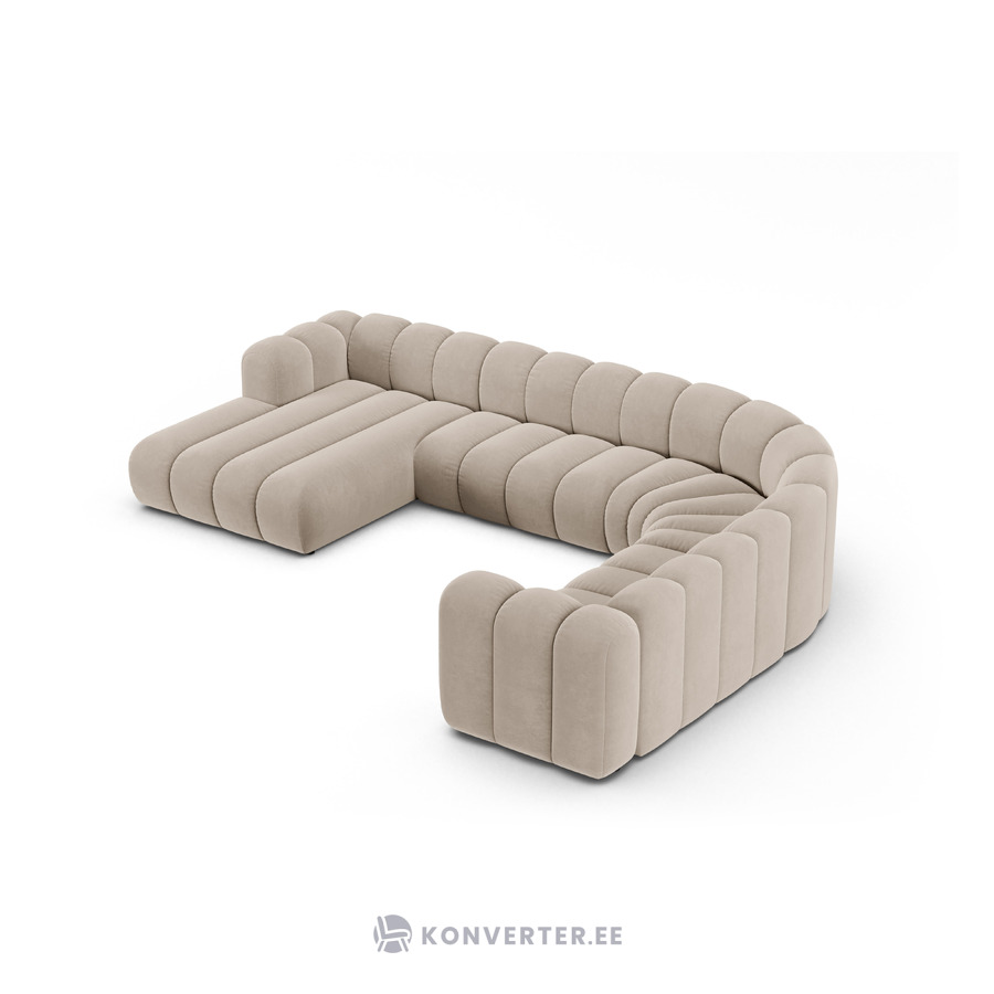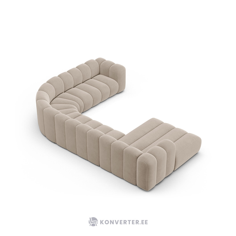 Угловой диван «Панорама» бежевый, бархат, правый